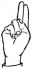 На ћирилици написано КОСТАДИН БОГИЧЕВИЋ састоји се из 17 слова [?]. Исписано ћириличном једноручном азбуком за глувонеме:
